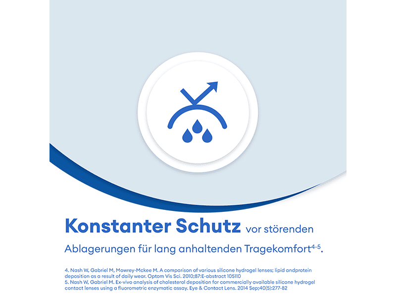 SmartShild Technologie garantiert der Kontaktlinse langanhaltende Feuchtigkeit.
