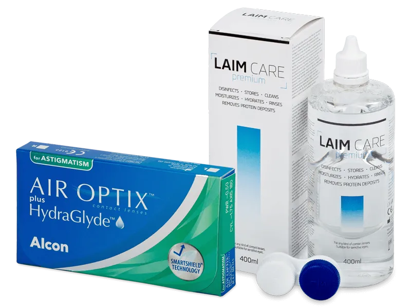 Air Optix plus HydraGlyde for Astigmatism (3 Linsen) + Laim Care 400 ml